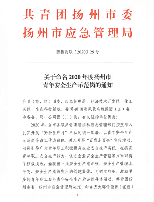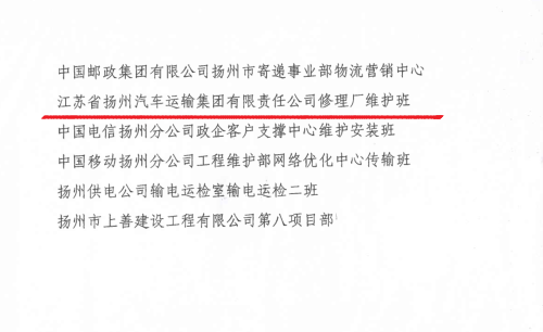 2020年,揚(yáng)汽集團(tuán)修理廠維護(hù)班切實(shí)落實(shí)“安全第一、服務(wù)第一、質(zhì)量第一”總目標(biāo),以突出的成績(jī),被共青團(tuán)揚(yáng)州市委與揚(yáng)州市應(yīng)急管理局授予“揚(yáng)州市青年安全生產(chǎn)示范崗”稱(chēng)號(hào)。