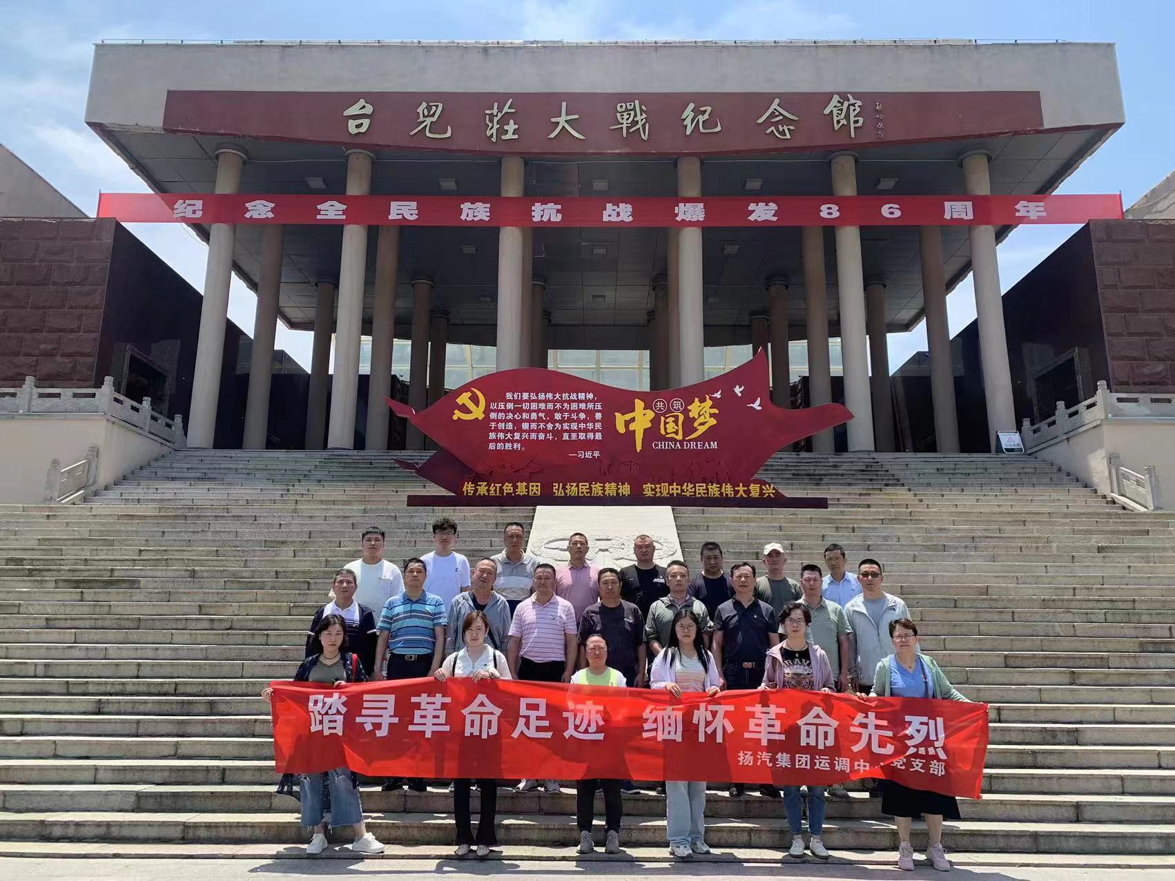 在慶祝建黨102周年暨紀念“七七事變”86周年之際,為緬懷革命先烈,繼承和發(fā)揚黨的光榮傳統(tǒng)和優(yōu)良作風,7月7日,揚汽集團運調(diào)中心黨支部開展“踏尋革命足跡,緬懷革命先烈”紅色之旅主題黨日活動,組織全體在崗黨員、積極分子和部分優(yōu)秀員工前往臺兒莊大戰(zhàn)紀念館,實地接受愛國主義教育和革命傳統(tǒng)教育。